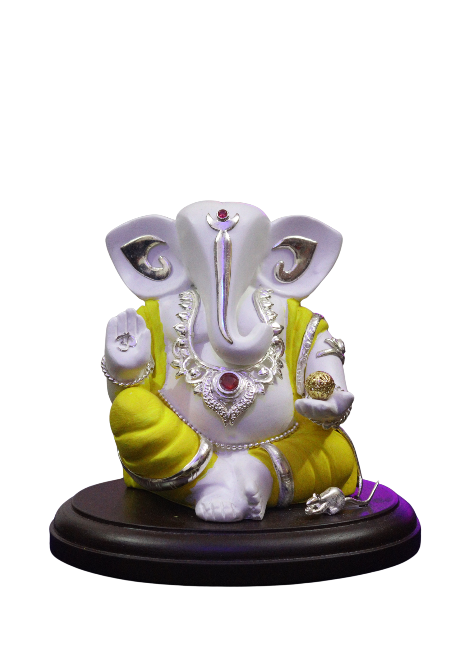 Made from high-quality premium resin, the Ganpati murti features a smooth glossy finish and durable build, making it perfect for long-term use. Its compact yet eye-catching design makes it ideal for home temples, office desks, living room decor, or car dashboards.